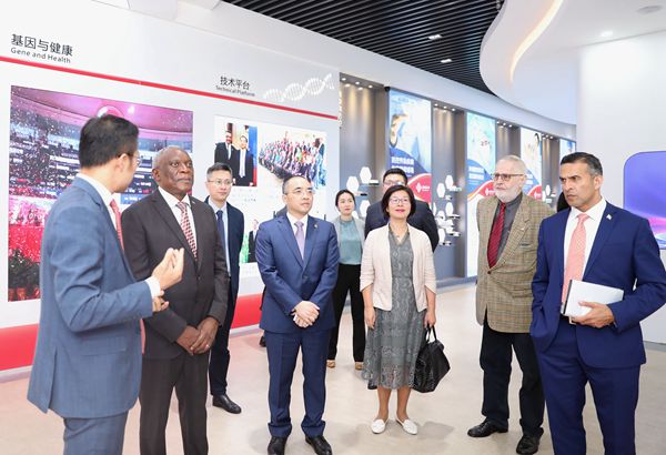 谢胜文大使一行参观了圣湘生物展厅,了解了圣湘创立和发展的故事,听取了圣湘生物在科技创新、产品方案、国际化进程、抗击新冠肺炎疫情及合作共建实验室等相关情况的介绍。