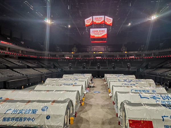 7月23日,按照南京市防疫指挥部部署要求,在南京青奥体育公园体育馆内,搭建6组共18座气膜实验室。接到任务后,圣湘生物所有支援队员紧急行动,技术服务、后勤运输等团队紧密合作,圣湘方案全面助力南京“猎鹰号”气膜实验室搭建,构建疫情防控筛查体系。
